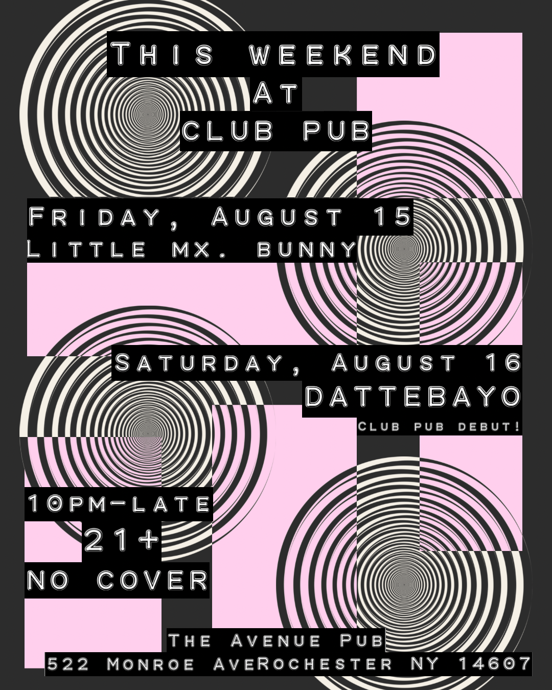 The Avenue Pub hosted weekly dance nights featuring local DJs, creating a consistent space for the community to gather and connect through music. I managed monthly DJ scheduling, planned special events, and developed all marketing materials to promote each lineup and share updates.